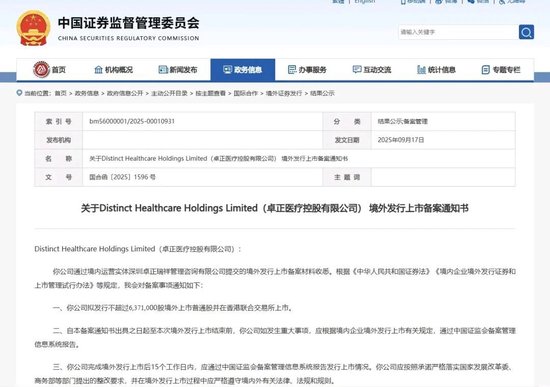 近日,卓正医疗控股有限公司获中国证监会境外发行上市备案通知书,拟在香港联合交易所上市。